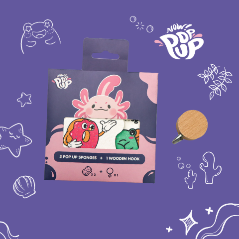• Now Pop Up is a creative company that produces sustainable cleaning supplies. They make eco-friendly sponges, scourers and more from materials like vegetable fibers as alternatives to plastic. Now Pop Up's goal is spreading smiles while caring for the planet through sustainable pops of color, character and joy.